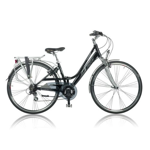 Cadre aluminium Treeking24 vit. Shimano Deore STIFourche télescopique SR-CR8V SuntourFeu arrière Spanninga EclipseFeu avant Spanninga LuceoAntivol AXA DefenderJantes profilées aluSelle Selle Royal RESPIROGarde-boues design 'carbon'-lookJeu de direction intégréPneus réfléchissantsTige de selle suspenduePorte-bagage alu forteBoîtier de pédalier étanchePatte démontablePoids net:17,5 kg
